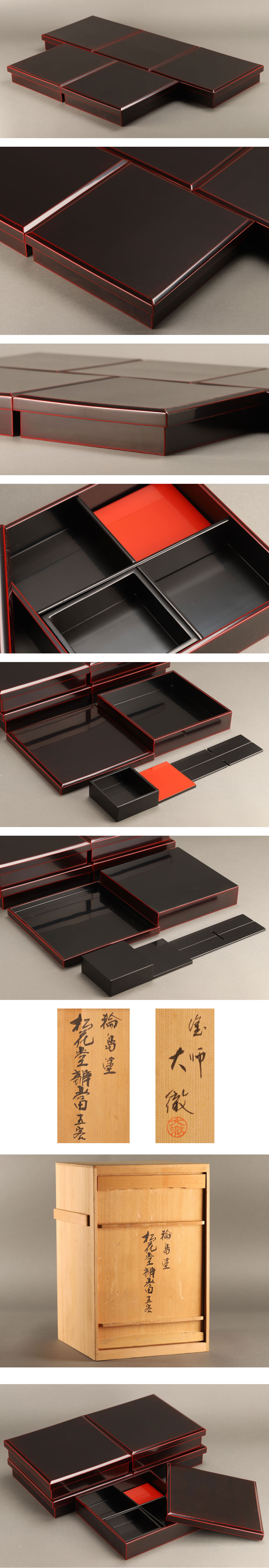 【流】 能登輪島塗 大徹造 松花堂弁当五客 共箱 HD053拍卖