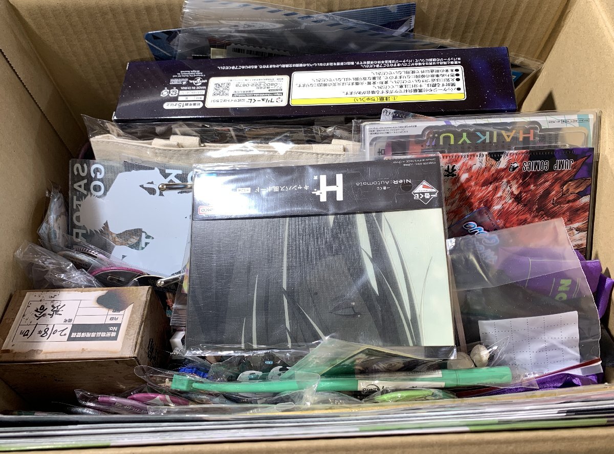 【紫波60-1-1111】【現状品/140】グッズ まとめ ウィンドブレーカー ガンダム 呪術廻戦 エヴァ 鬼滅の刃 ゴジラ ハイキュー ワンピース 他 クリアポスター アクスタ 缶バッジ 色紙 ポーチ ラバスト ポーチ バック