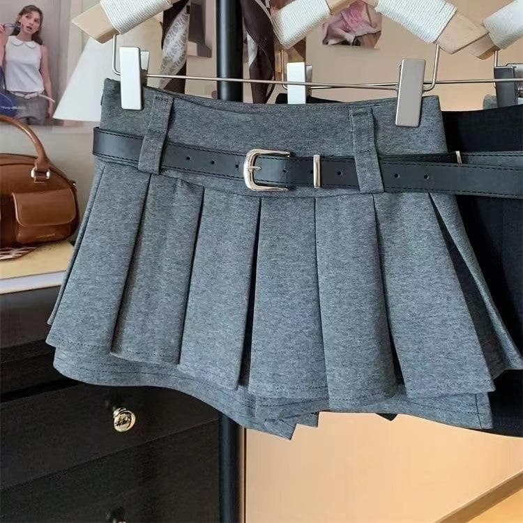 - 新入荷 M スカパン グレー パンツ付き ベルト プリーツ 秋冬