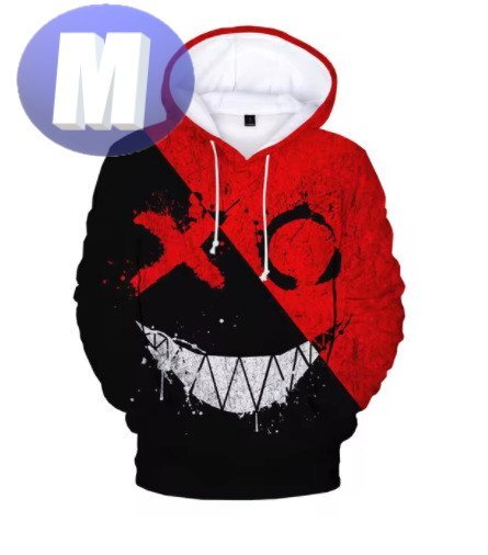- フード付き 〇×パーカー 赤黒 M トレーナー アウター 防寒 n726-6
