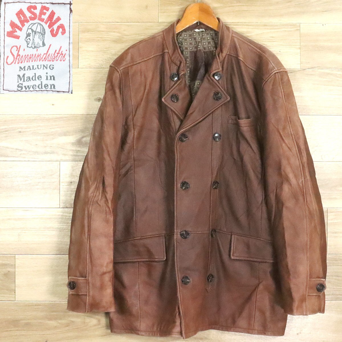 > D11S/O9.22-6 スウェーデン製 MASENS ダブルブレスト レザージャケット 本革 ゴートスキン ワークジャケット コルビジェジャケット