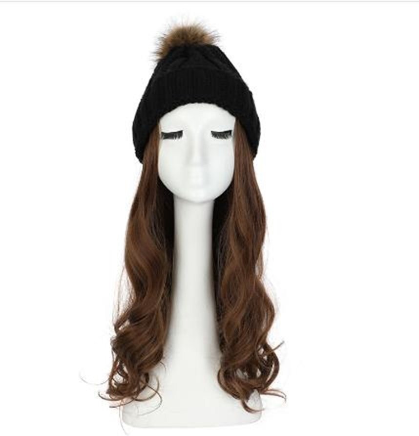 - ウィッグ付きニット帽 ニット帽/ブラック ウィッグカラー/L ロングヘアー イメチェン 髪色チェンジ コスプレ