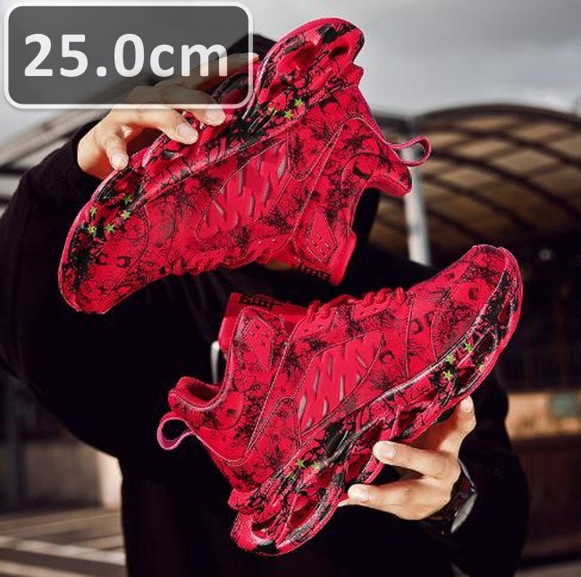 - メンズ スニーカー レッド 25.0cm 靴 シューズ 防滑 通勤 通学 旅行 【239】
