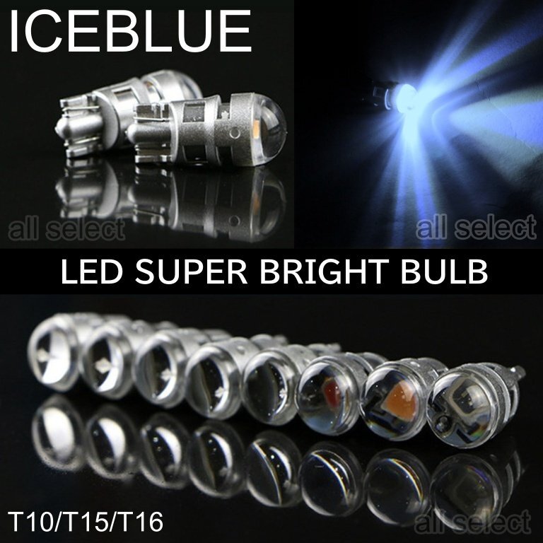 - アイスブルー 3030SMD T10/T15/T16 LED LEDウェッジ球 LEDバルブ 2個 ポジション ルームランプ ナンバー灯
