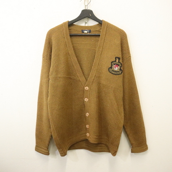 - q208 90sビンテージ GIORDAND ウールニットカーデガン■1990年代製 表記Lサイズ ブラウン ワッペン 古着 アメカジ ストリート 激安 希少