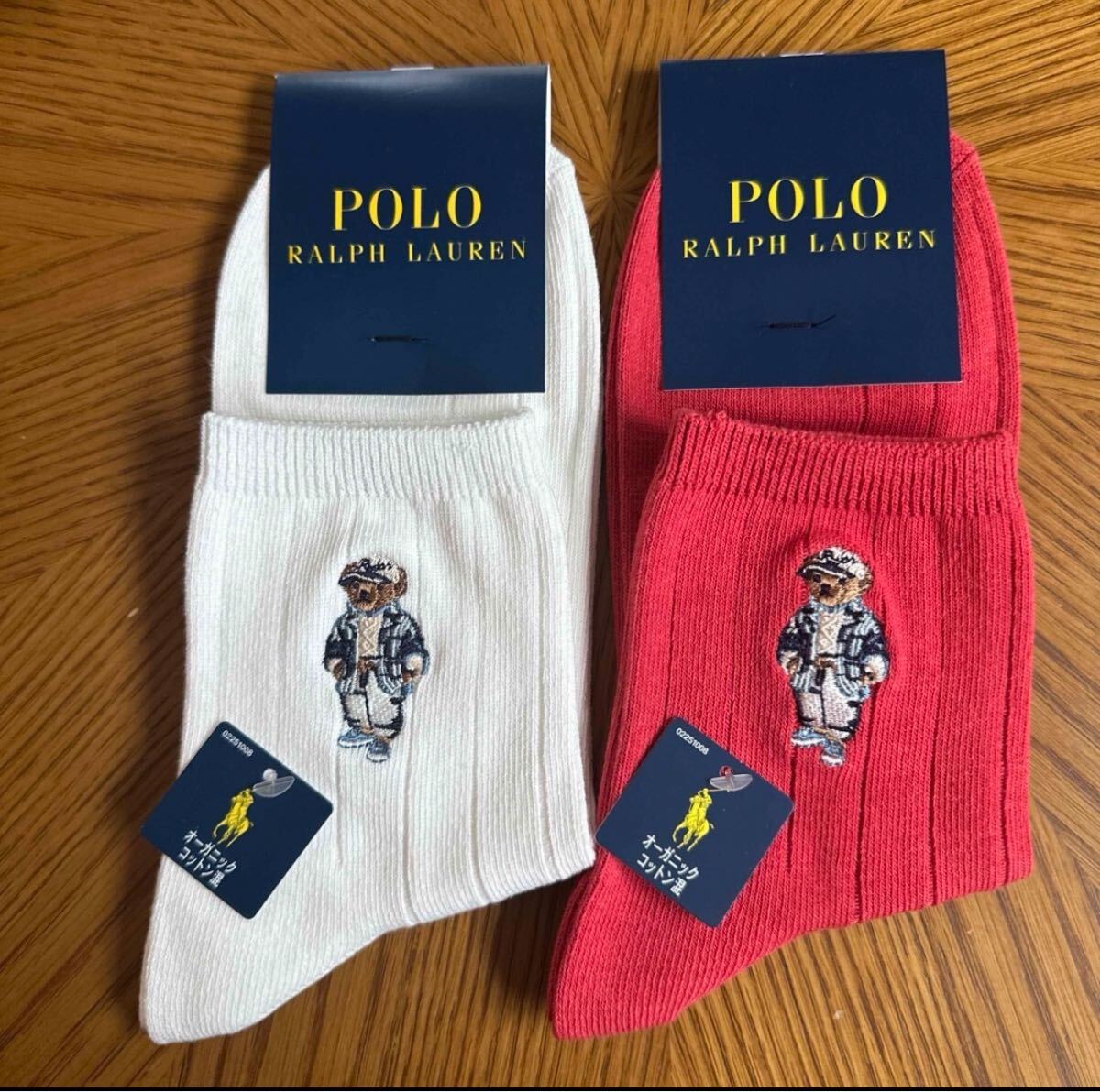 - 新品★ポロラルフローレン ポロベアソックス 2足セット 25〜27cm ショート★レッド&ホワイト