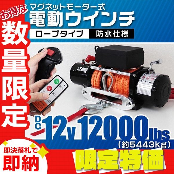 > 【限定セール】新品 リモコン付き 電動ウインチ DC12V 牽引力12000LBS(5443kg) ロープタイプ オフロード車 ジムニー ボート
