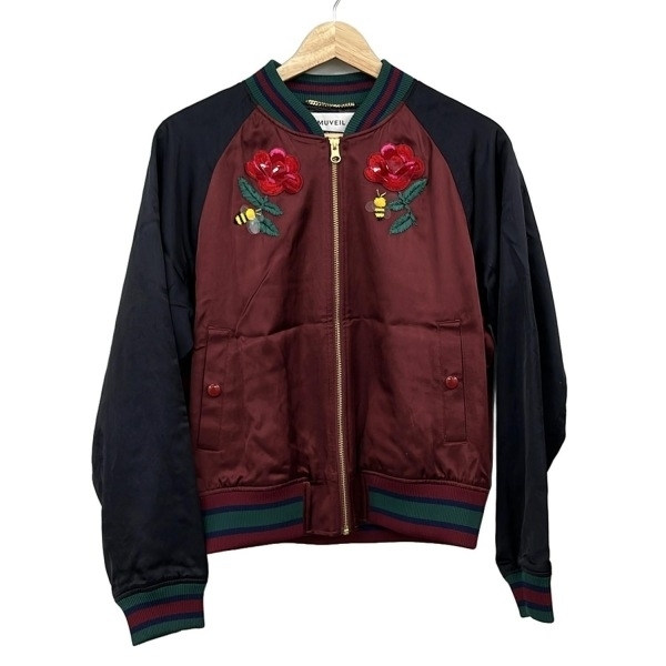 - ミュベール MUVEIL ブルゾン サイズ38 M - ボルドー×ダークネイビー×マルチ レディース 長袖/フラワー(花)/蜂/イヌ/秋/春 美品