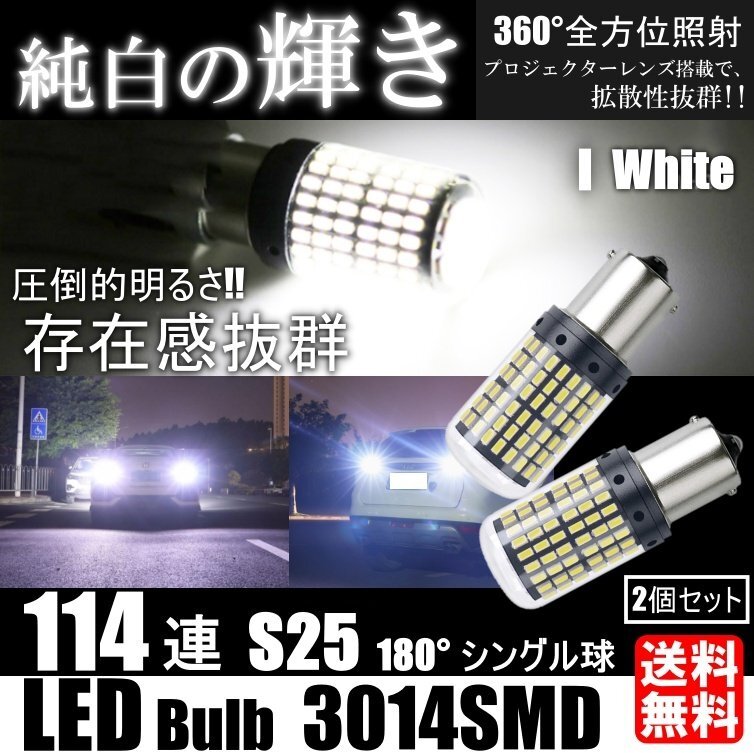 - S25 180° LED 144SMD シングル ブレーキ ストップランプ テールランプ ホワイト バックランプ 高輝度 ピンチ部違い対応 2個SET