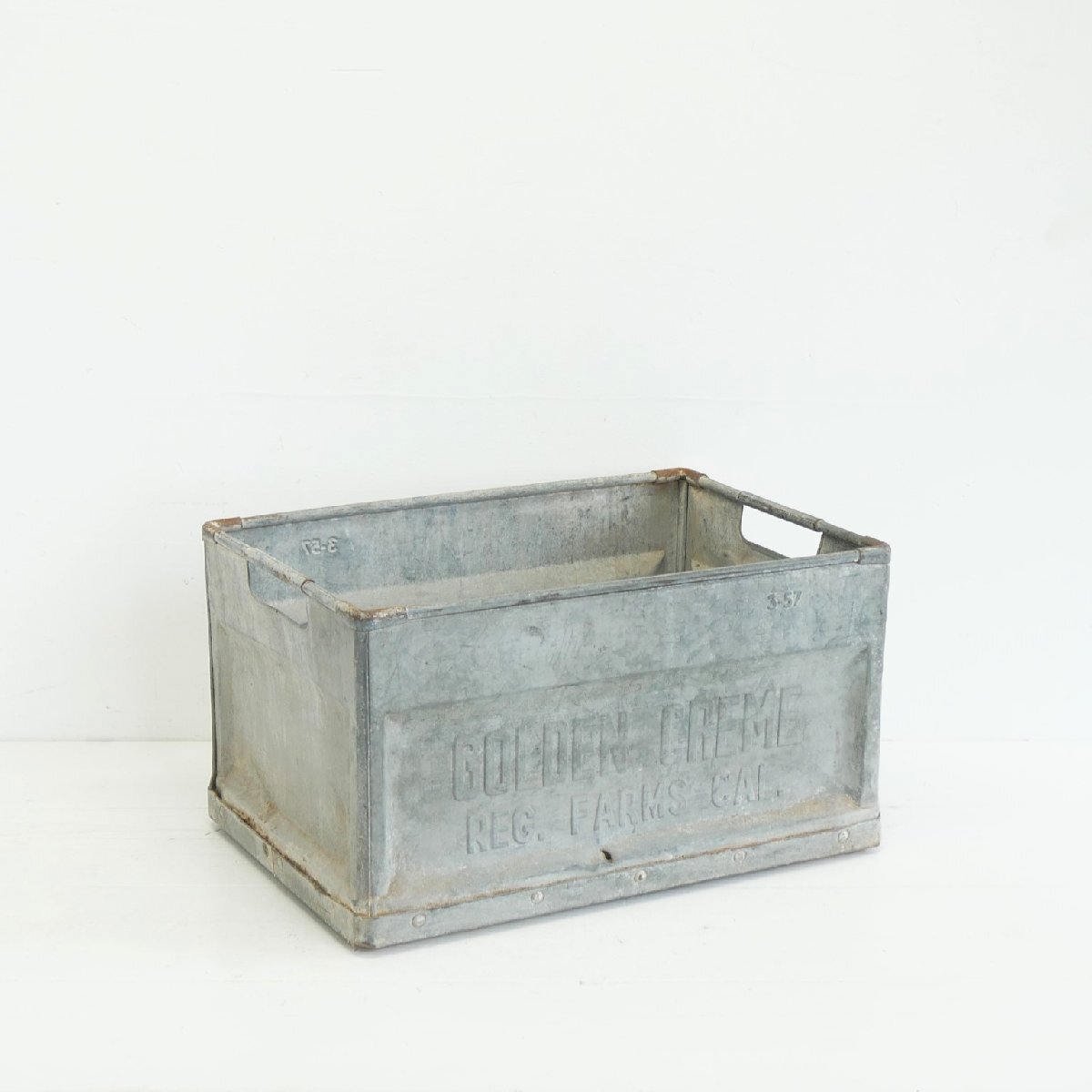 > 50s GOLDEN CREME ヴィンテージ メタルボックス / アメリカ 農場 クレート 運搬箱 容器 鉄カゴ プランター #606-45-165-317