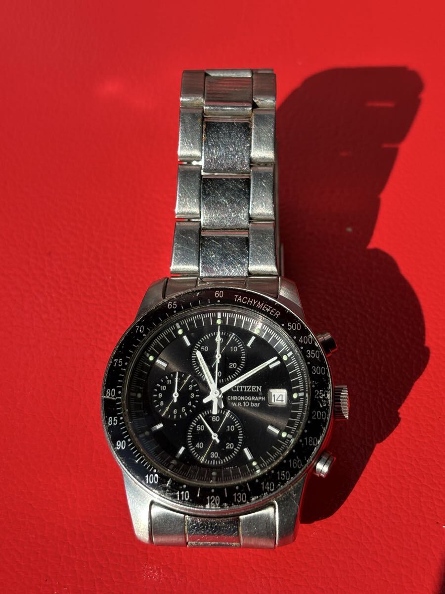 - CITIZEN/シチズン クロノグラフ 0510-K004951 動作OK 下ボタン沈み有り クォーツ メンズ腕時計 ジャンク扱い 純正ベルト
