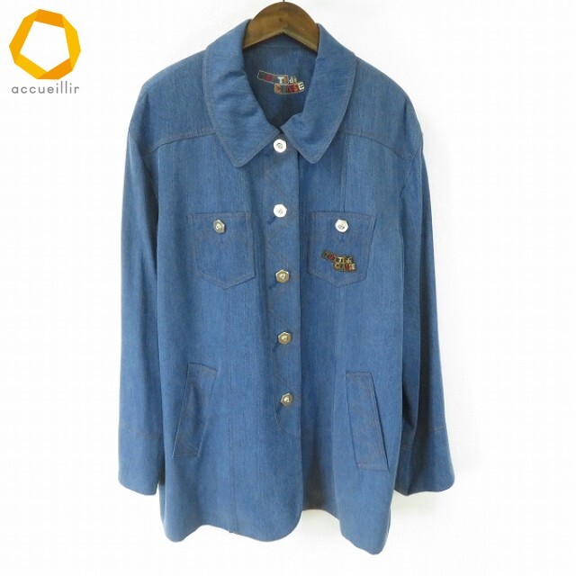 - #a レリアン Leilian シャツ ブラウス ジャケット 11 青系 デニム調 飾りボタン 長袖 日本製 レディース [972652] k01