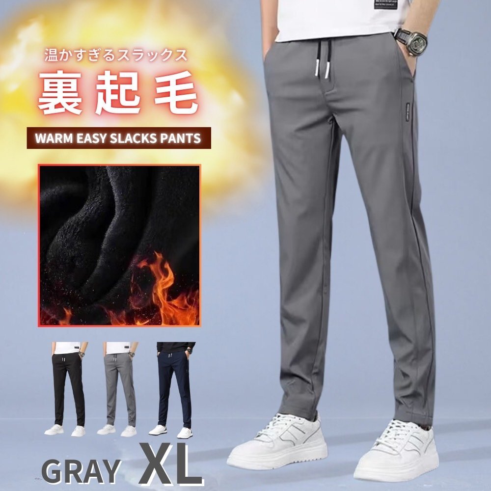 - スラックス メンズ 裏起毛 スウェットパンツ 暖パン 防寒 ジョガーパンツ チノパン カジュアル 冬ズボン スポーツ グレー XL