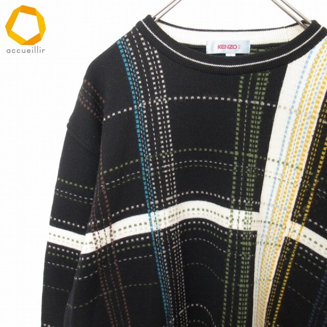 ◎商品名(タイトル):ケンゾーゴルフ KENZO GOLF ヴィンテージ ニット セーター チェック メンズ [x937510]◎ブランド名:ケンゾーゴルフ KENZO GOLF◎アイテム名:ニット セーター◎サイズ:3◎性別:メンズ◎カラー:マルチ◎素材:画像をご参照ください◎実寸サイズ:肩幅約 51.5cm・袖丈約 56.5cm・着丈約 67cm・胸囲約 55cm×2◎商品コメント:★当店の商品はすべてリユースアイテムとなります。特質上、些細なダメージは記載しておりませんので着用に問題のない使用感、着古した雰囲気などはご了承くださいませ。◎コンディションレベル:やや傷や汚れあり◎コンディション備考:左袖にわずかに汚れがございます。(画像5参照)キーワード/アクイール/古着/used/ビンテージ/ヴィンテージ/昭和/レトロ/小杉産業/ゴルフウエア/高田賢三