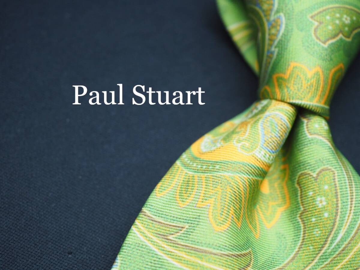 - 美品【Paul Stuart ポールスチュアート】 G1759 ペイズリー 黄緑 SILK ブランド ネクタイ 古着 良品 転売 仕入