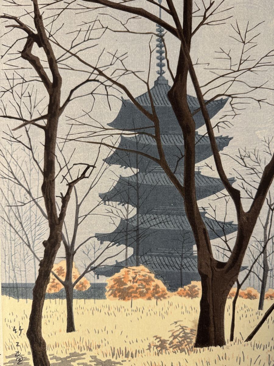 - 真作 浅野竹二 手摺木版画『 東寺冬枯 』 昭和十五年 寂光院 名所絵 京都 検索) woodblock print 小林清親 川瀬巴水 葛飾北斎 吉田博