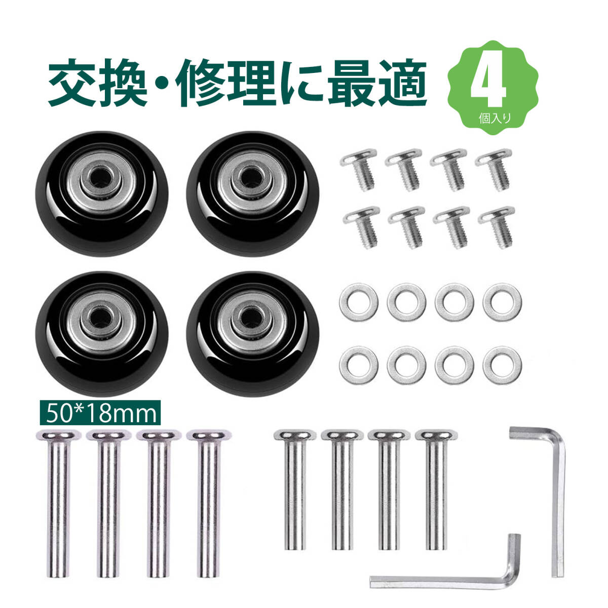 > 【4個入り】スーツケースキャスタースーツケースタイヤ交換 スーツケース交換キャスター キャリーケース 車輪 交換 静音キャスター ;J7606;