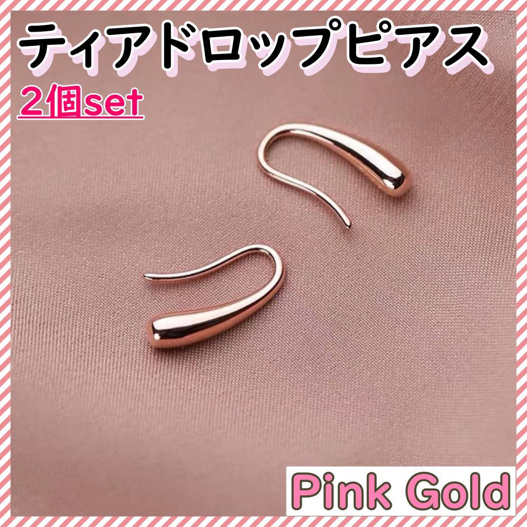 - ティアドロップピアス しずく ローズゴールド 両耳用 韓国 レディース フープ