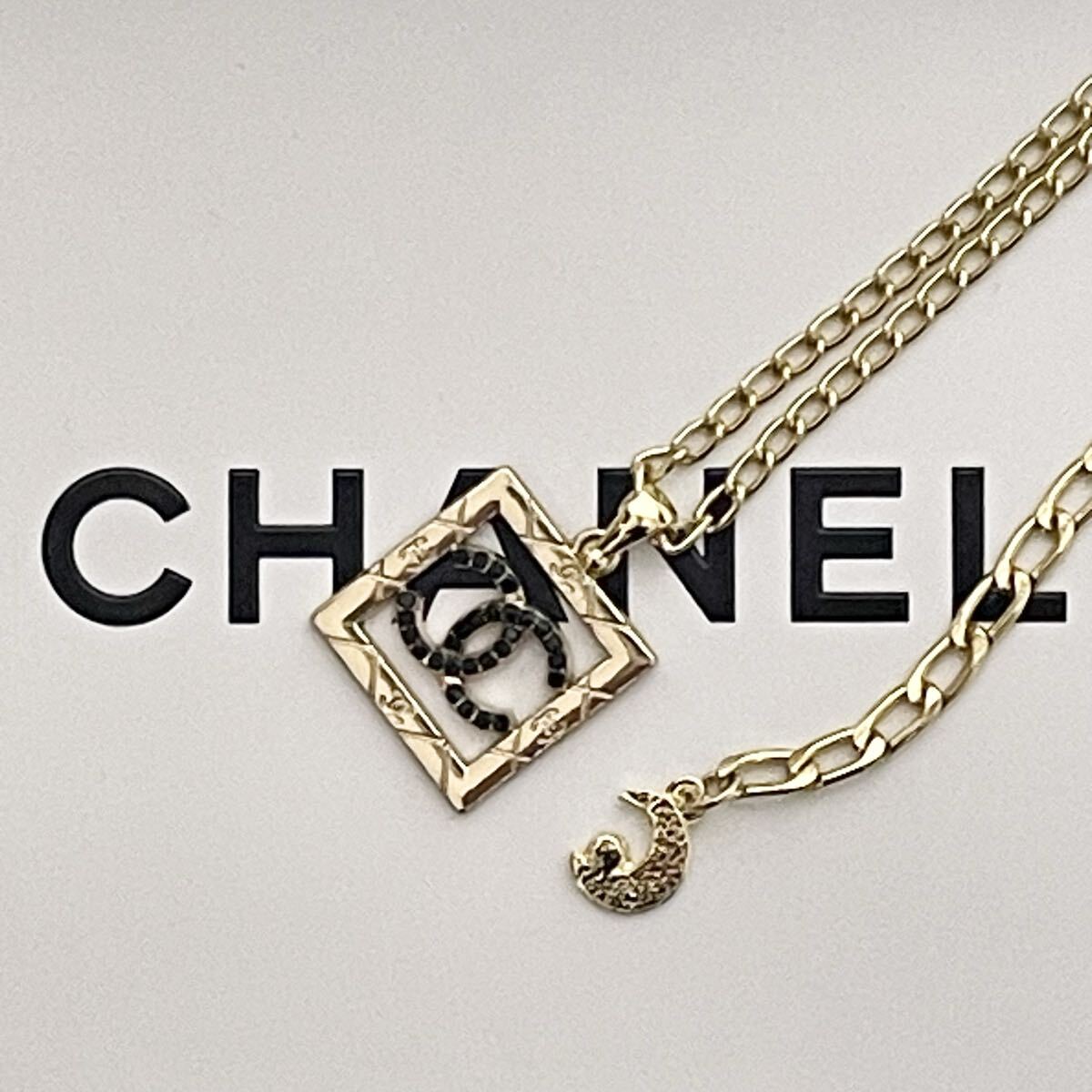 - 1円〜【美品】CHANEL シャネル ヴィンテージ ネックレス ココマーク スクエア ゴールド ブラックストーン ヴィンテージ ネックレス