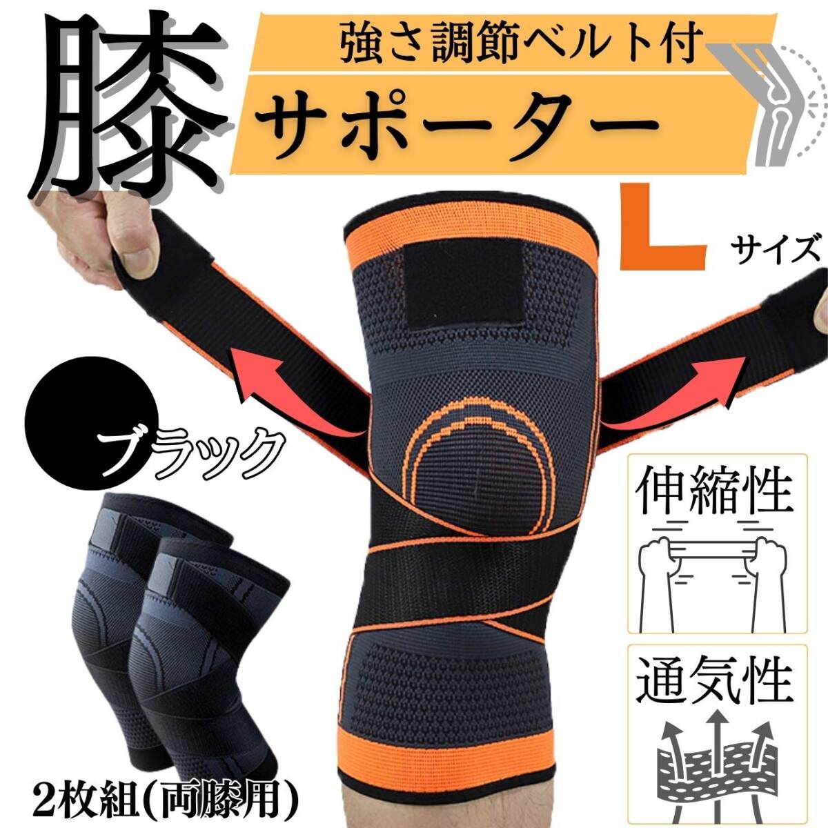 - 膝サポーター L ブラック 2枚セット ベルト式 男女兼用 ひざ ヒザ 薄手