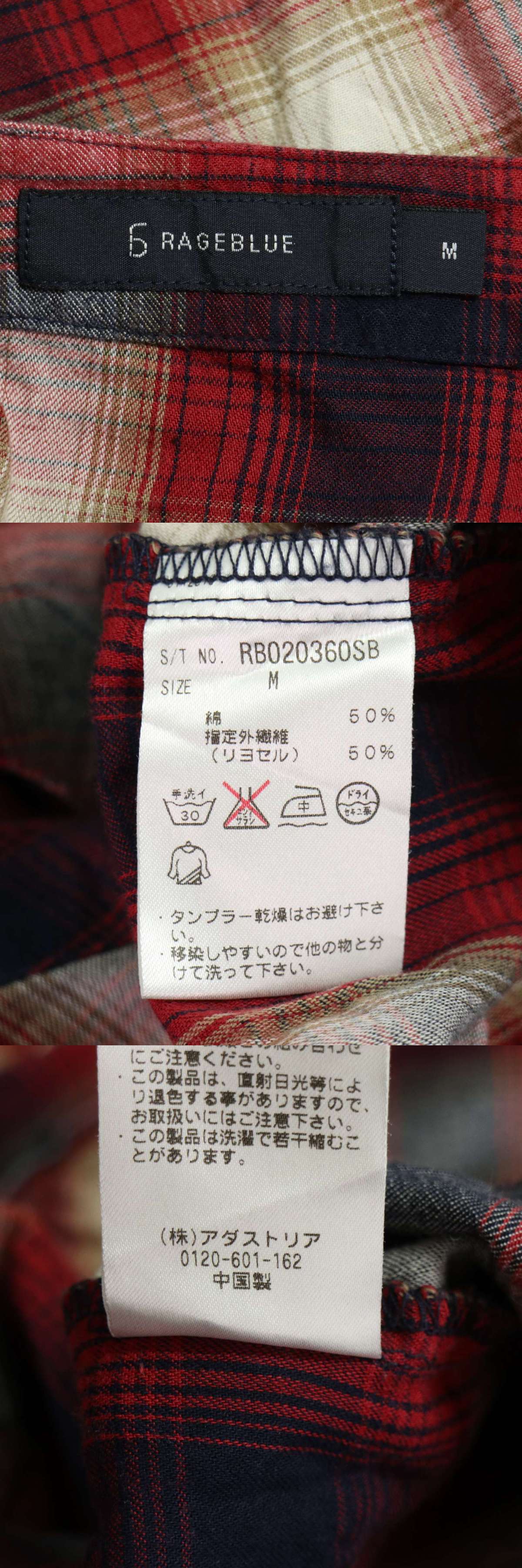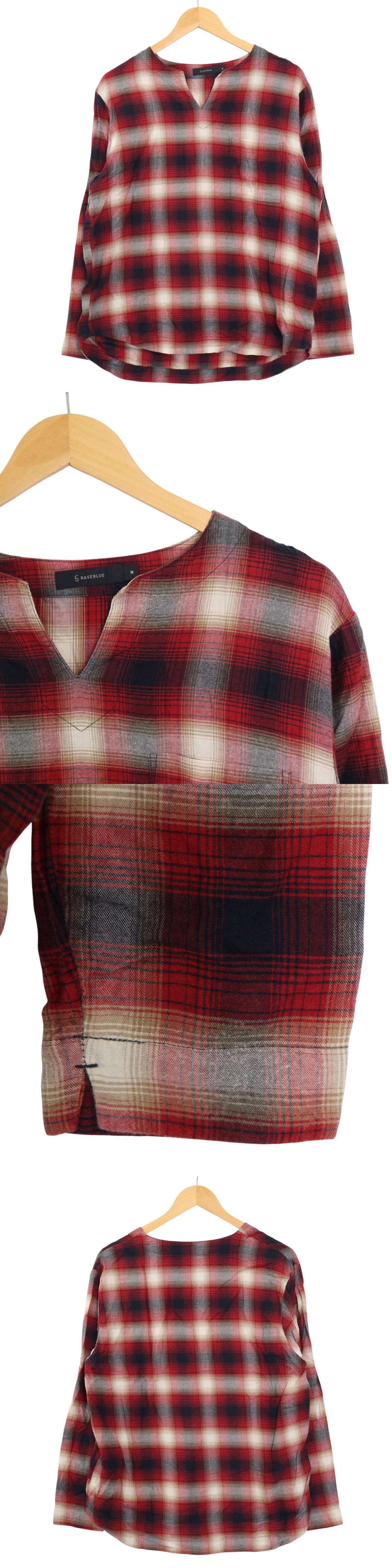 - RAGEBLUE レイジブルー 秋冬 スキッパー 長袖 オンブレー チェック ネル カットソー ロンTシャツ Sz.M メンズ