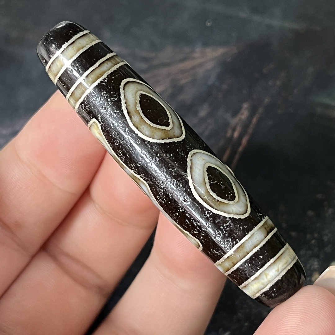 - 旧蔵 三眼天珠 風水開運 自然風化 高油 根付 中国古玩 骨董品 時代物 稀少唐物