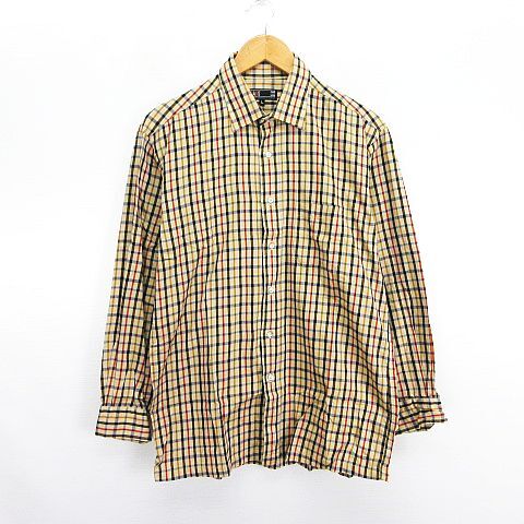 > ダックス DAKS シャツ 長袖 チェック 胸ポケット コットン L ベージュ ※EKM メンズ