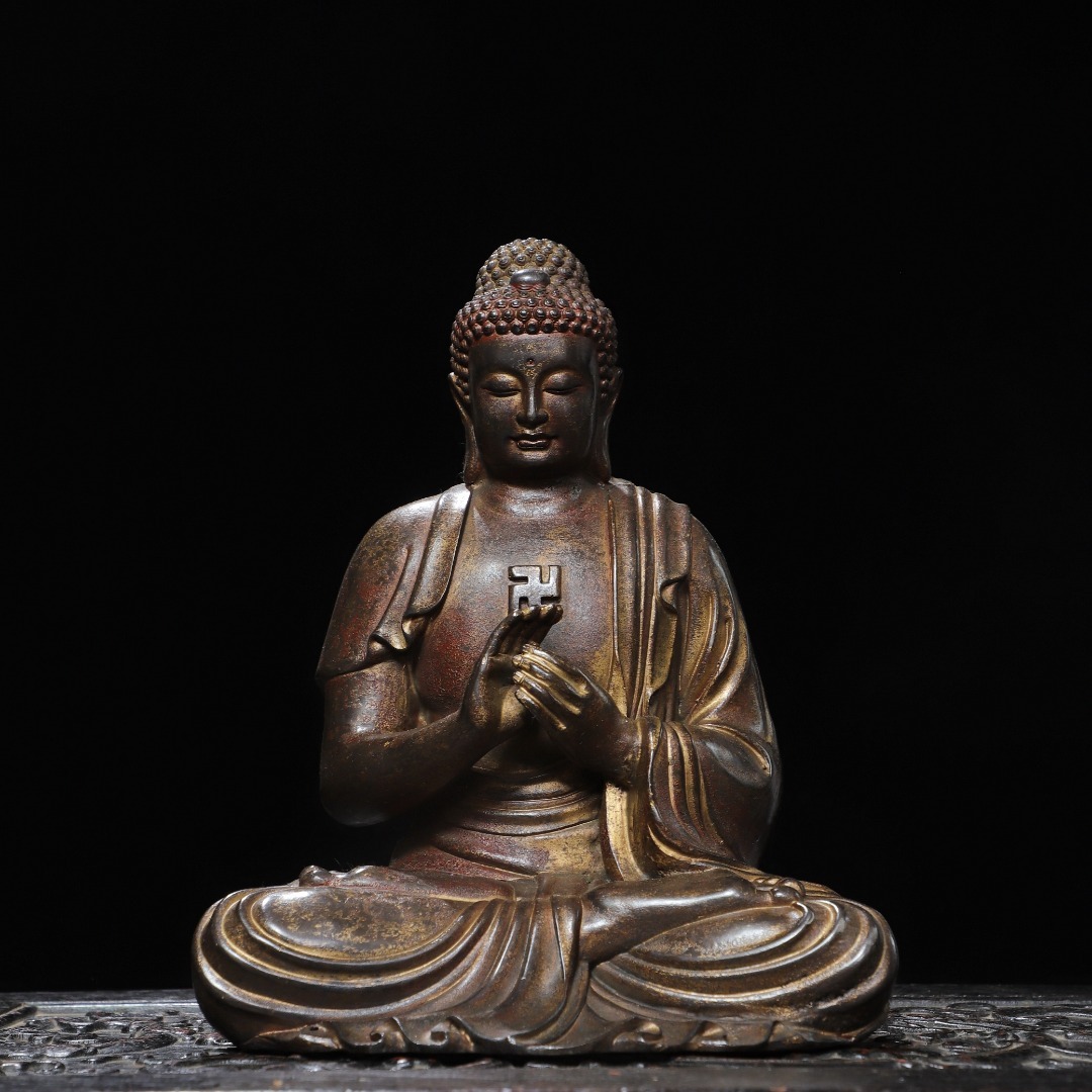 - 旧蔵 古銅彫 泥金 大日如來 佛像 古擺件 古置物 中国古玩 骨董品 時代物 稀少唐物