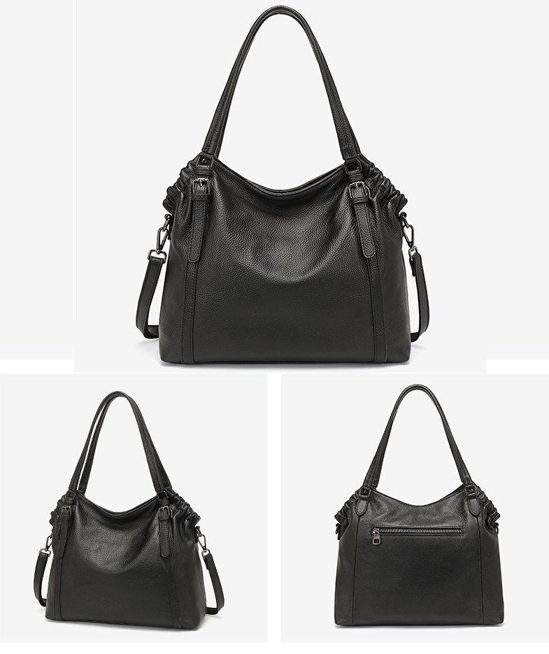 - 高品質 牛皮 ハンドバッグ ショルダーバッグ ブラック レディース 女性 【n423】