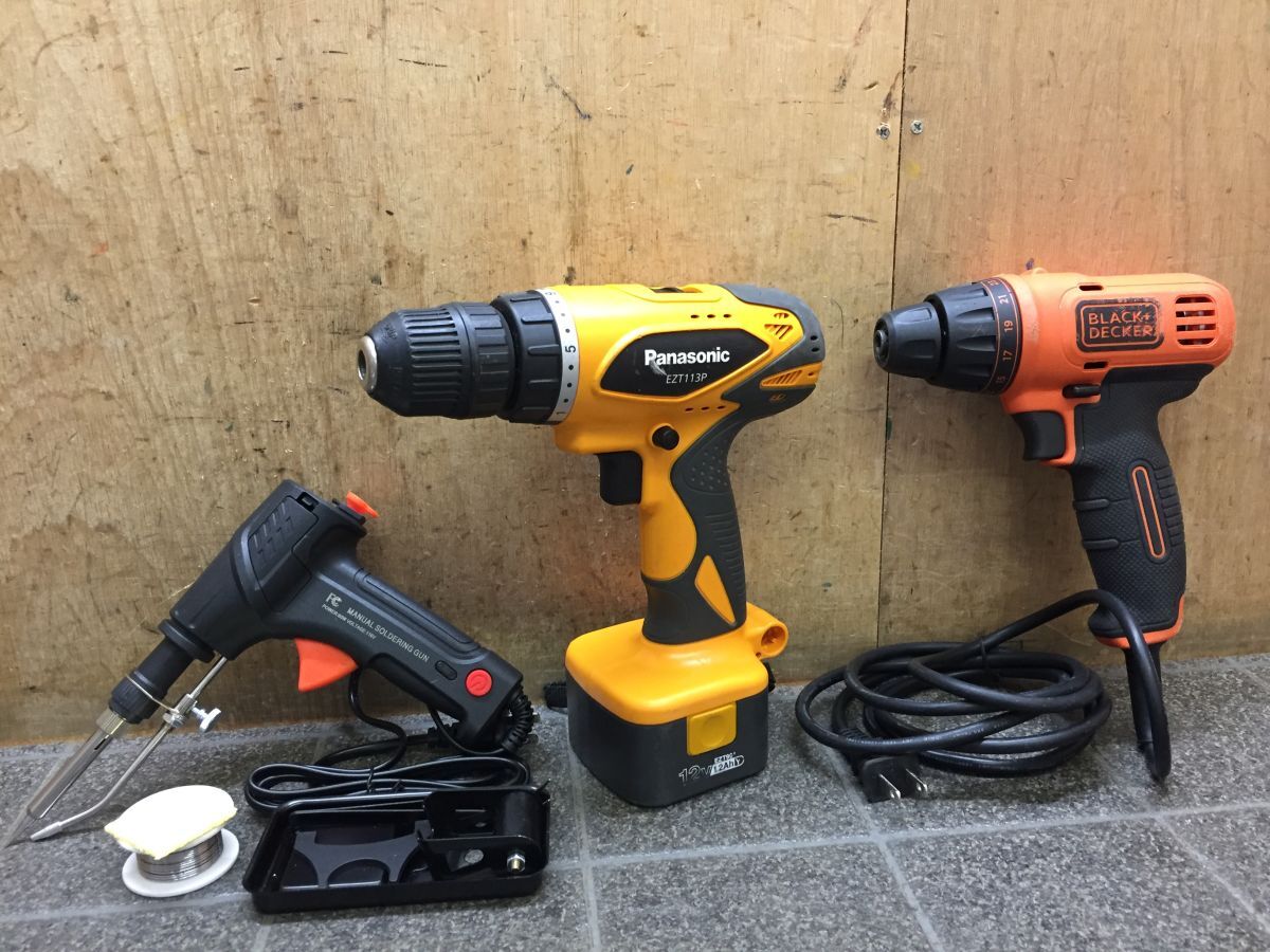 - JJ2093 電動工具3点まとめて[BLACK&DECKER ドリルドライバー][Panasonic 充電式ドリルドライバー][ガン型ハンダ鏝] 現状品/100