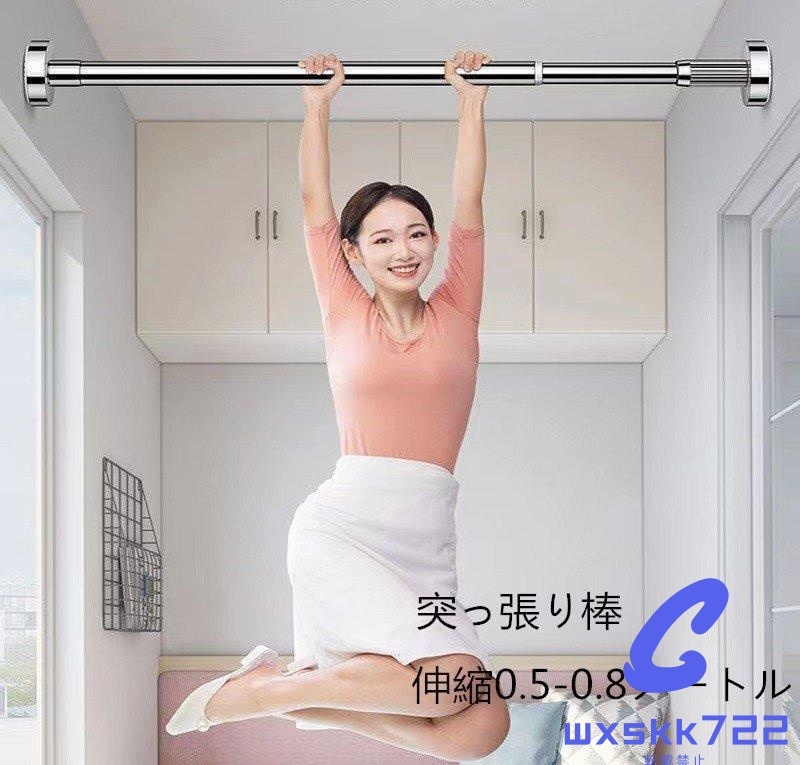 - 突っ張りラック 伸縮棒 突っ張り棒 ステンレス つっぱり棒 収納 強力 押入れ 突っ張り棚 物干し竿 洗濯物 0.5-0.8メートル MAY517