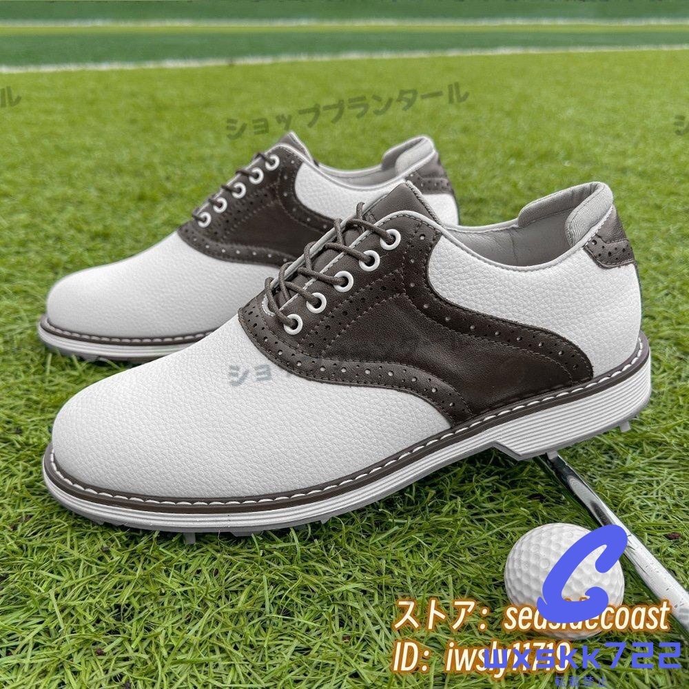 > 高級品◆ゴルフシューズ メンズ 切替 イギリス風 スポーツシューズ 運動靴 スニーカー フィット感 超軽量 通気性 防滑防水 ブラウン