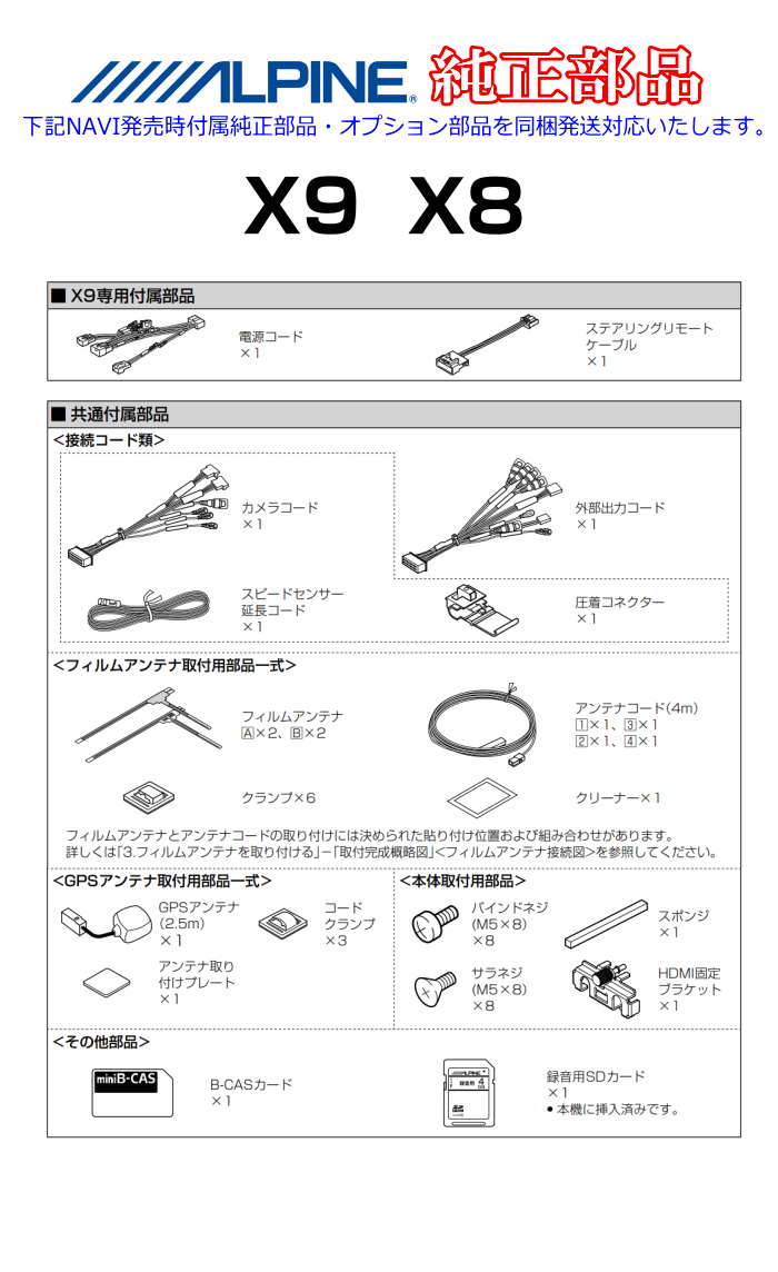 - ALPINE アルパイン X8 純正部品 フロントカメラ・リアカメラ・カメラビデオ入力・スピードセンサー・イルミ信号コード (AR02