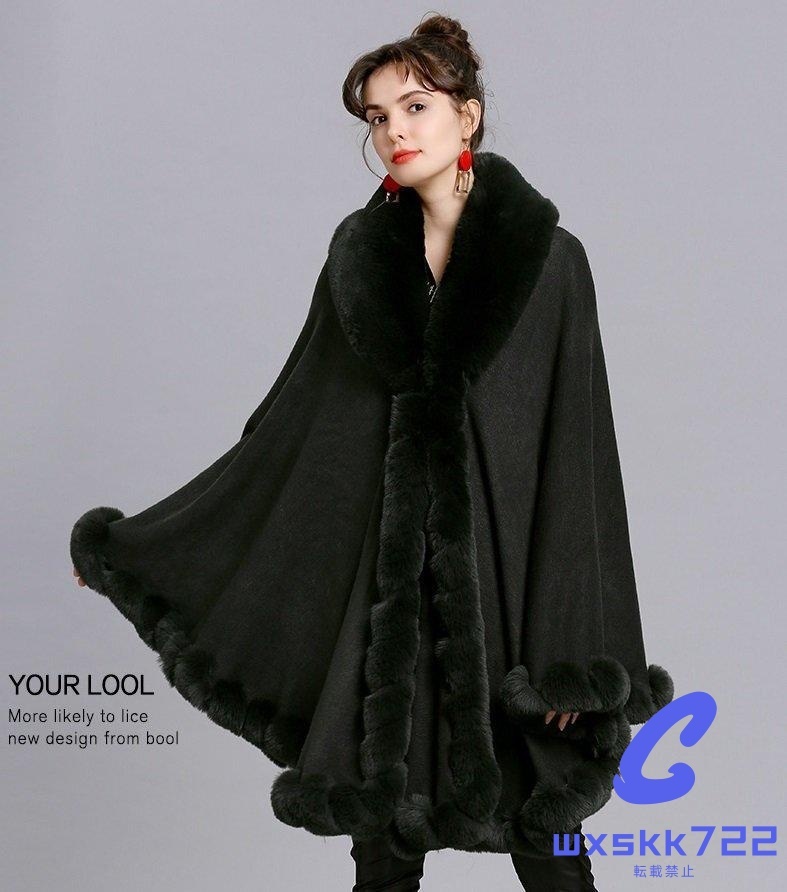 - ポンチョコート レディースマントコート フェイクファーケープコート アウター フェイクカシミヤニットカーディガン冬物 ふわふわ