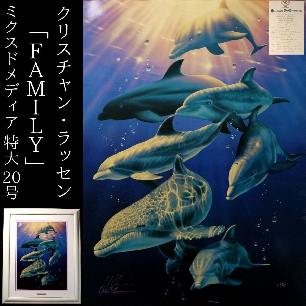 - 【LIG】真作保証 クリスチャン・ラッセン Lassen「FAMILY」ミクスドメディア 特大20号 大作 直筆サイン 証明書付[.QU]25.10