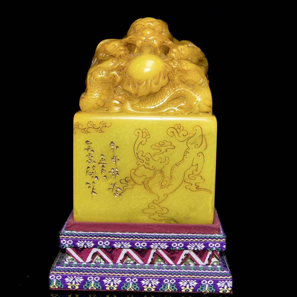 - 旧蔵 寿山石彫 龍頭 印章 古擺件 古置物 中国古玩 骨董品 時代物 稀少唐物