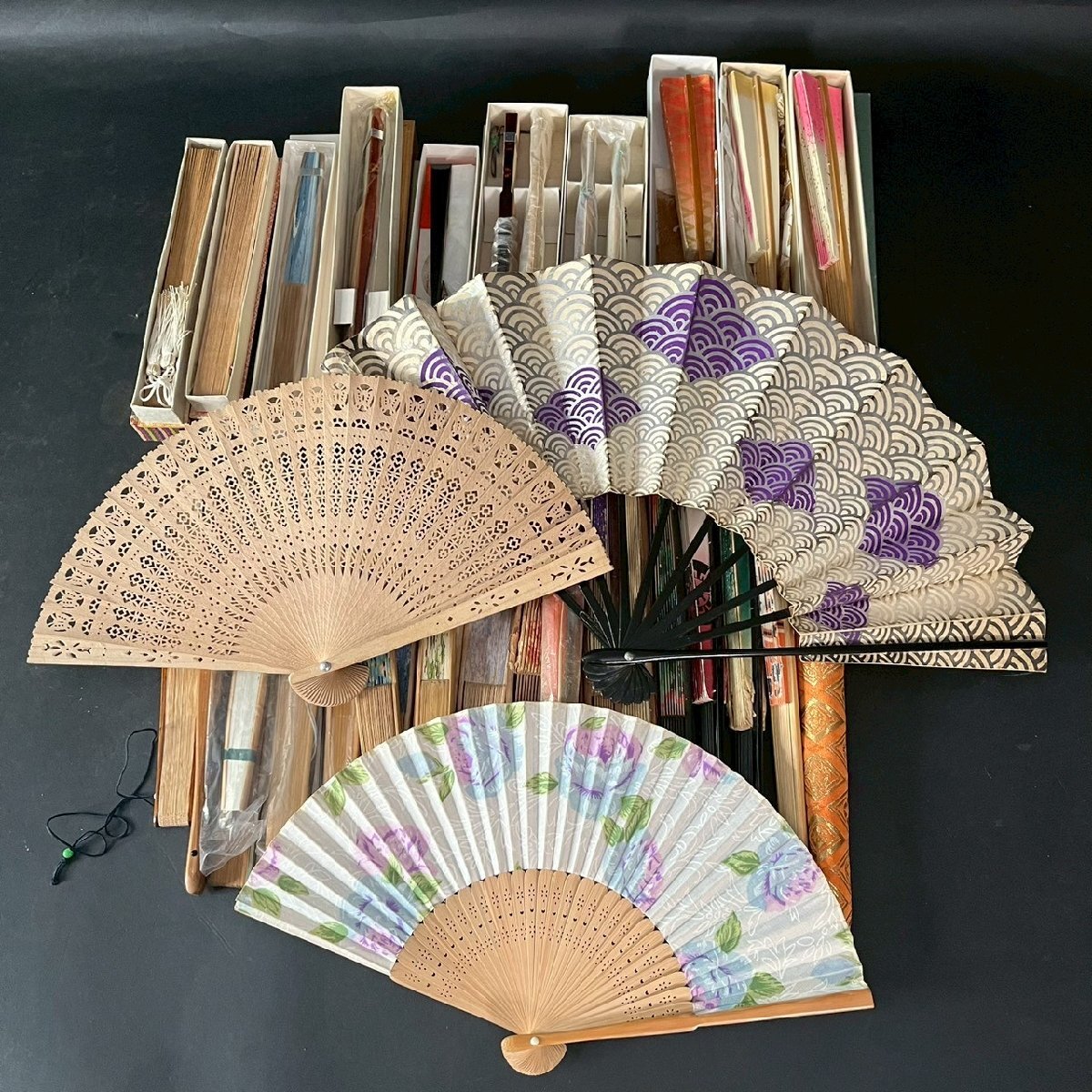 - OM1009-3-3 まとめ 扇子 せんす 扇 和小物 着物 小物 和装 和風 ファッション 日本舞踊 白檀 伝統 工芸 古道具 最大全長29㎝ 100サイズ