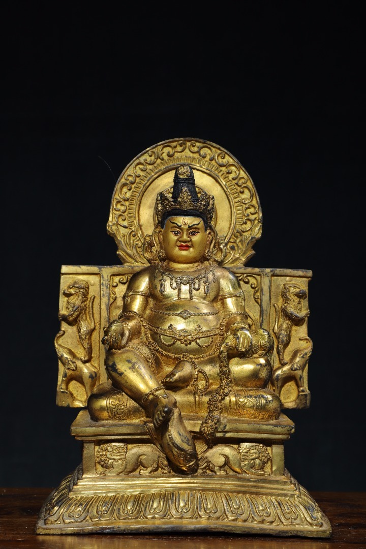- 旧蔵 古銅彫 塗金 描彩 黄財神 古擺件 古置物 中国古玩 骨董品 時代物 稀少唐物