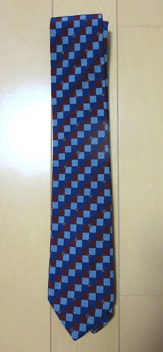 - 日本製 ネクタイ 市松模様 絹100% ジャカード織 イタリア製生地 シルク100%