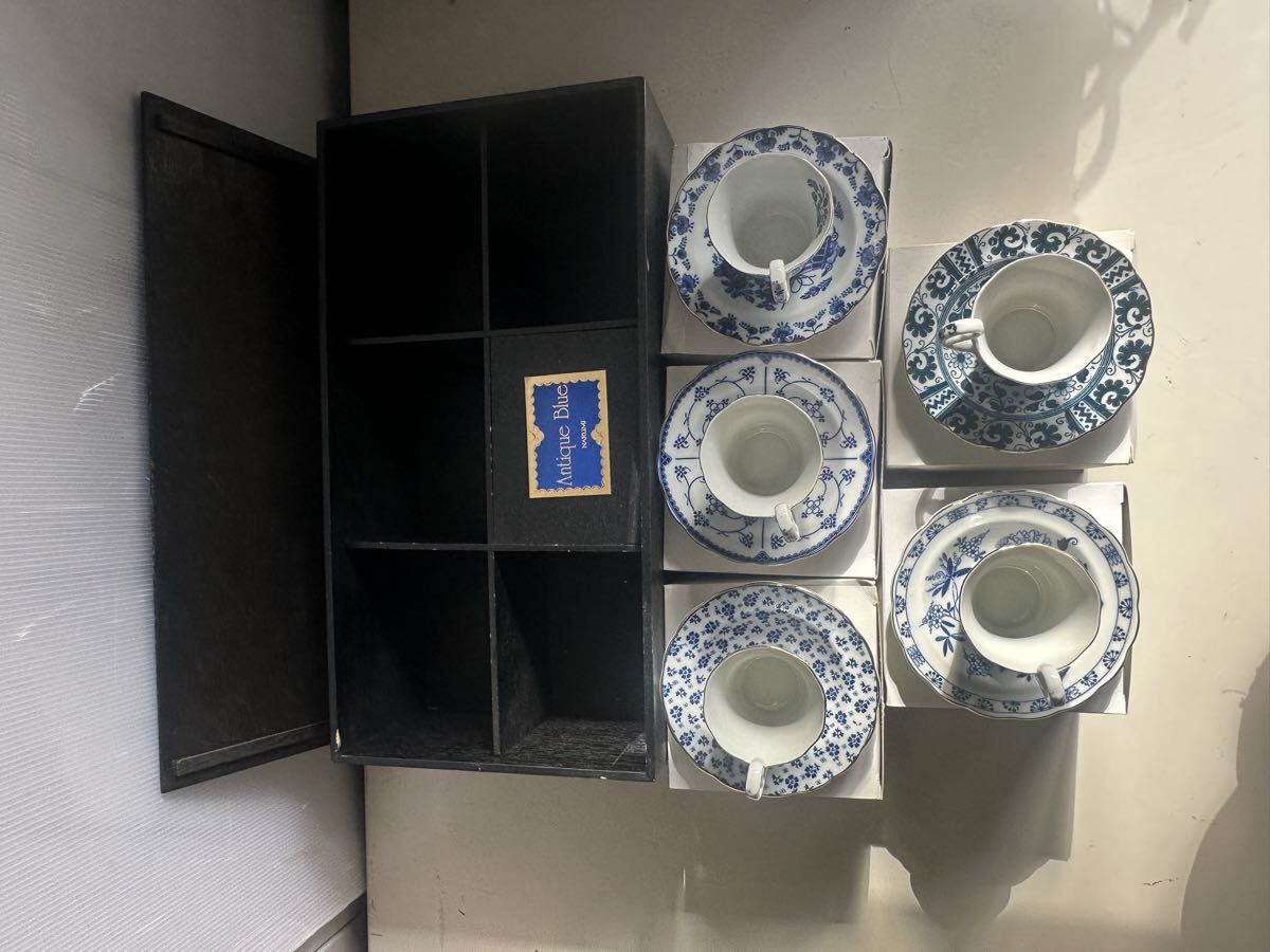 > NARUMI ナルミ アンティークブルー デミタスカップ&ソーサー 5客セット 金彩 花柄 ブルーフラワー