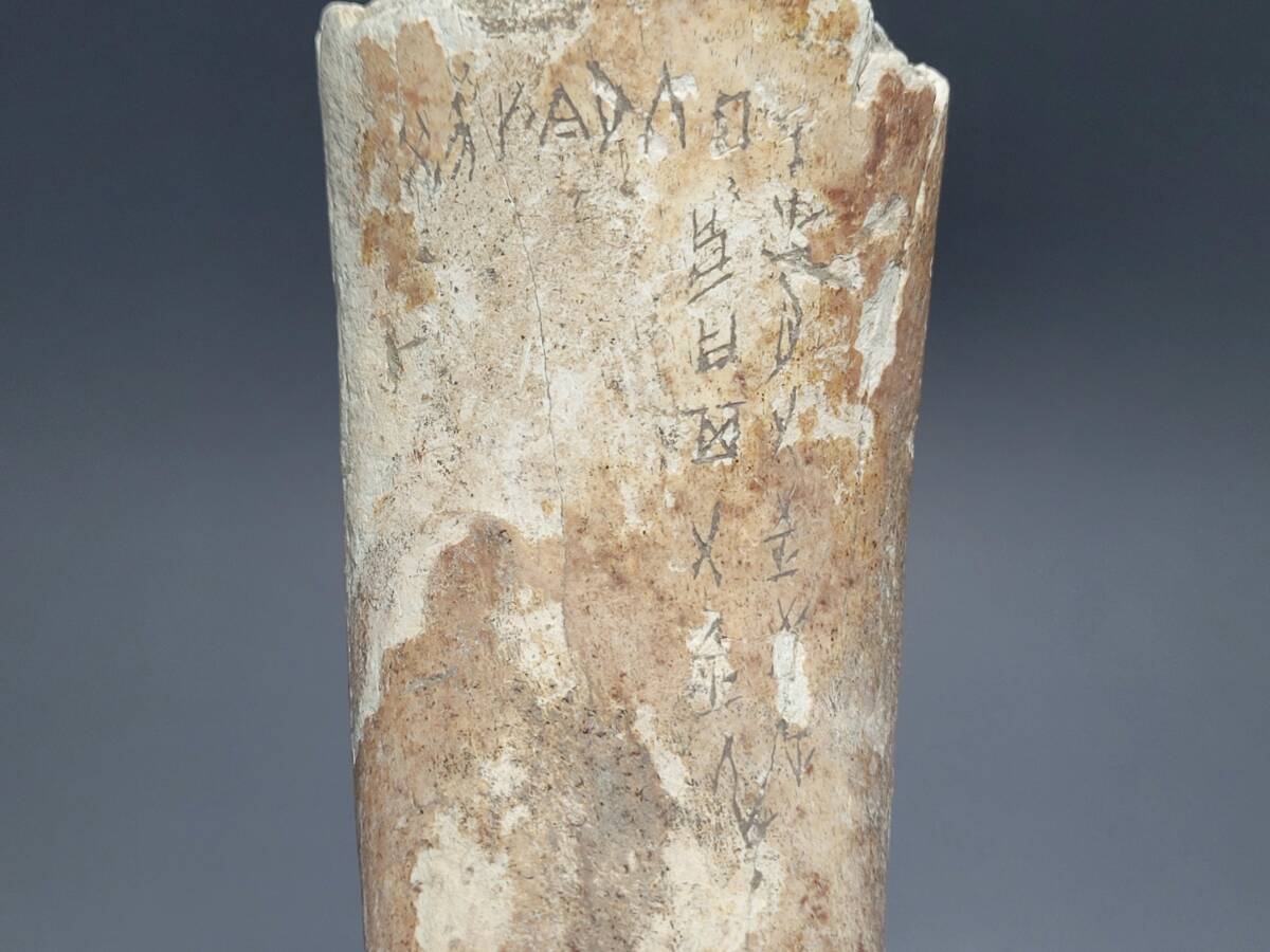 > ● 幅 約 9.5cm 陰刻の名文が精巧で古代の神秘が感じられる 時代唐物 陰刻名文 甲 骨 文・夏商時代 殷墟 置物 擺件 祭器 古墳 考古学 ●