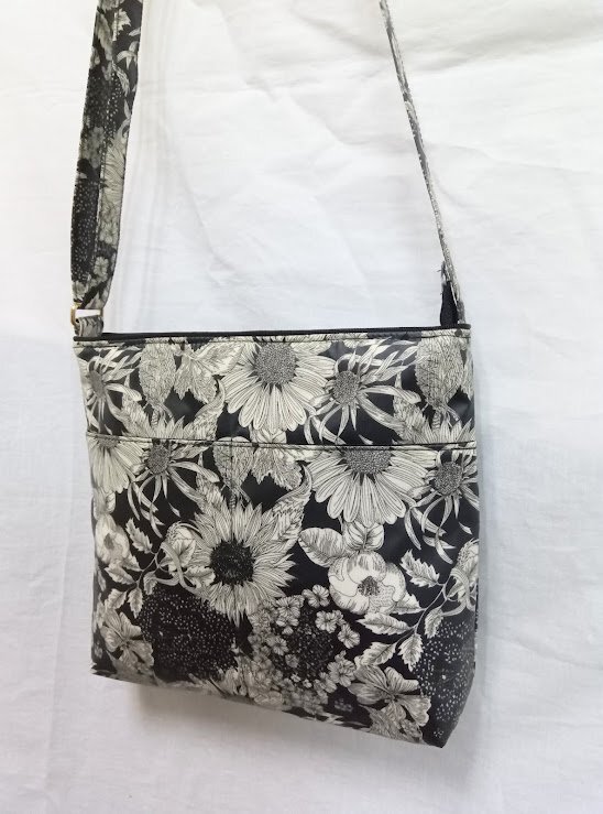 - ベル・ブランシェ☆リバティプリント ショルダーバッグ 価格:14,300円 スイム・ダンクレア 黒白 花柄 コーティングコットン Belle Branchee