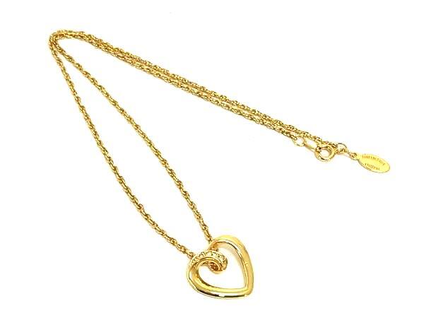 - ■美品■ VALENTINO ヴァレンティノ ラインストーン ハート ネックレス ペンダント アクセサリー レディース ゴールド系 DK8482