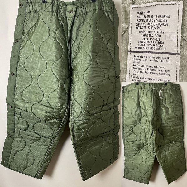 > 【ビンテージ 実物 新品】デッドストック 米軍 M-65 フィールドパンツ キルティング ライナー 中綿入り 防寒 パンツ L-L ミリタリー 軍パン