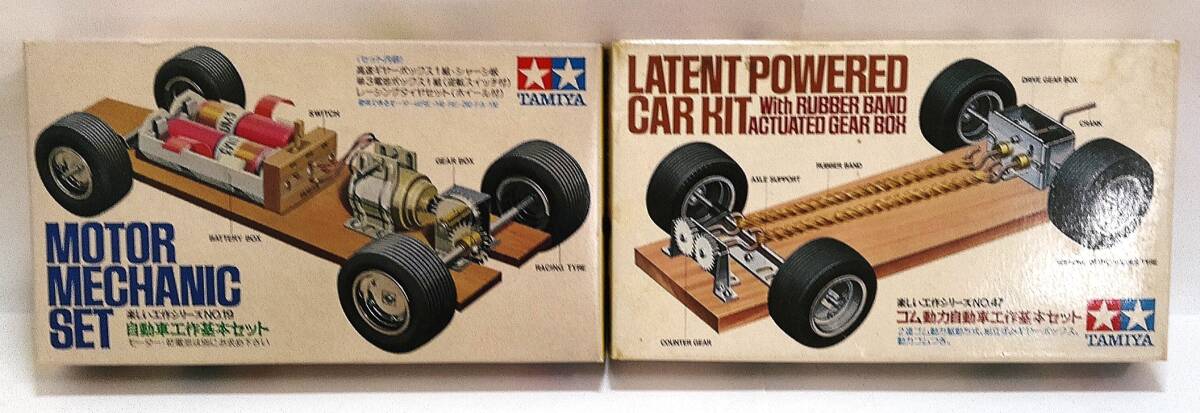 - M[宅コン]4507 TAMIYA タミヤ 楽しい工作シリーズ 自動車工作基本セット&ゴム動力自動車工作基本セット 当時物 未組立品
