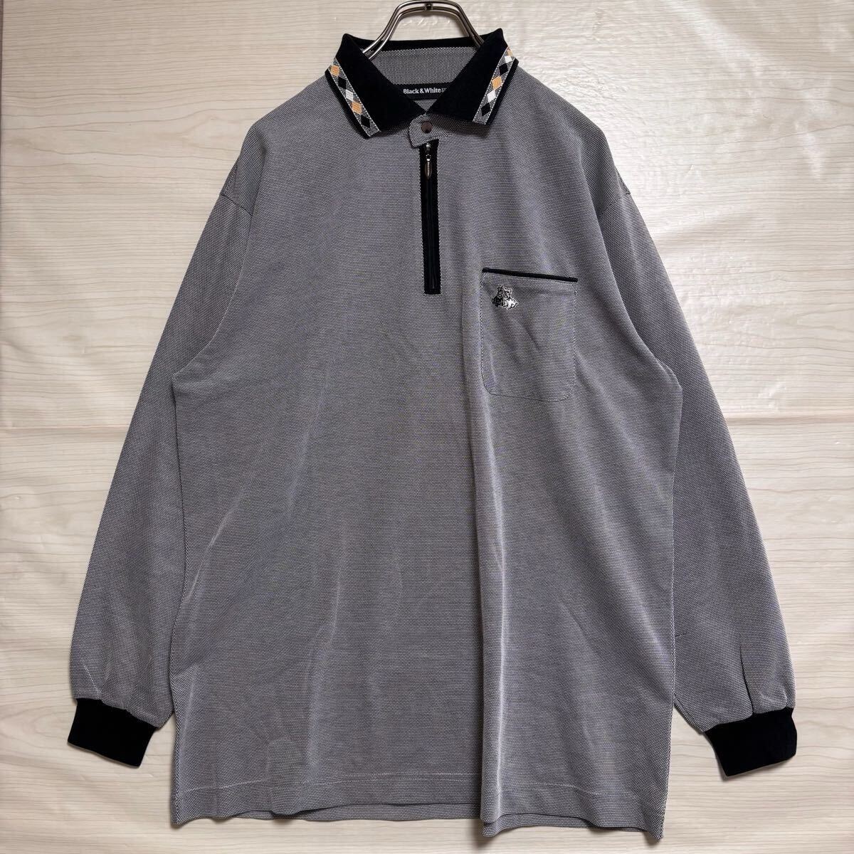 > BLACK&WHITE ブラックアンドホワイト 長袖ポロシャツ 長袖シャツ 鹿の子 ゴルフウェアサイズLL グレー ポリエステル メンズ トップス(46)
