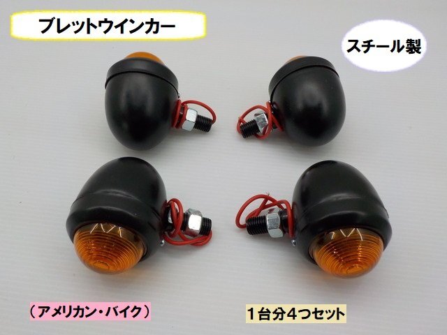 > JK★☆(19)スチール製ブレットウインカー(アメリカン・バイク)1台分4つセット(モンキー・ダックス・ハーレー・ドラッグスター)