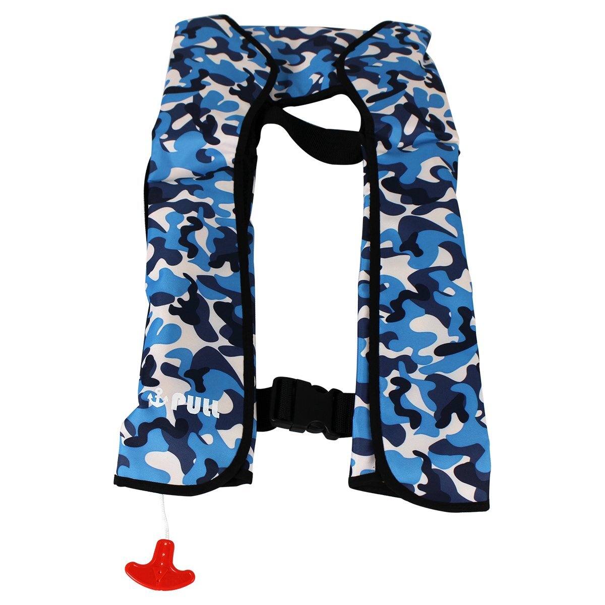 - 大人気!オリジナルデザイン! ライフジャケット 自動膨張式 肩掛け ベストタイプ 迷彩 ブルー ※男女兼用! フリーサイズ 釣り 船 ボート