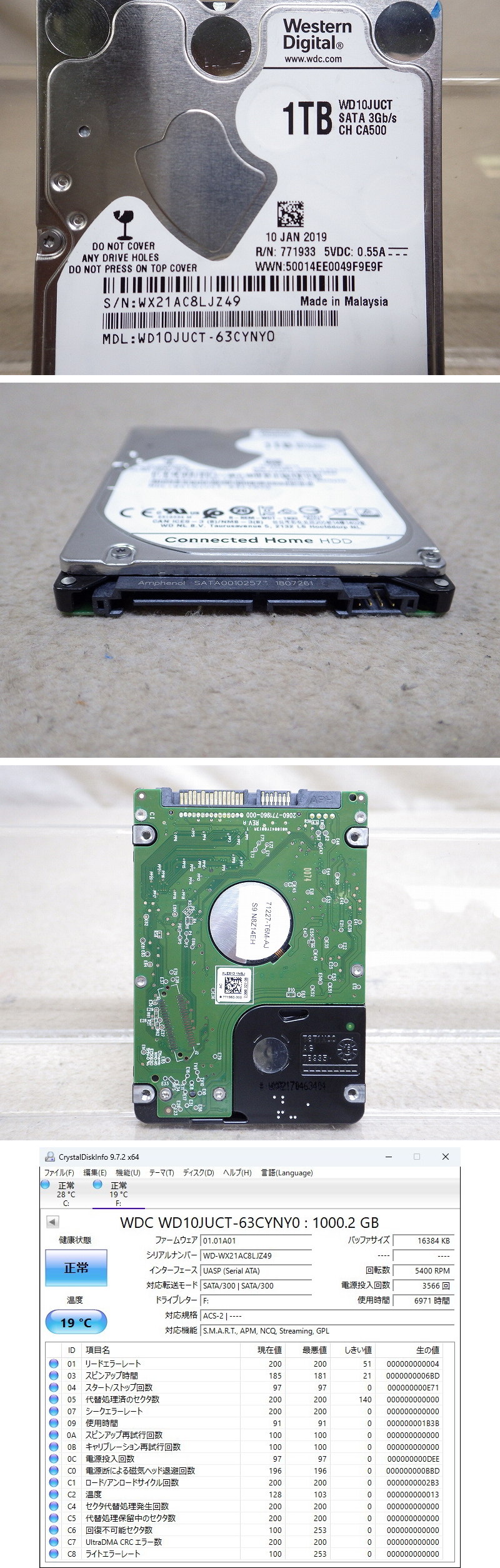 - Kネま2197 WD 2.5インチ SATA 内蔵HDD 1TB WD10JUCT-63CYNY0 パソコン周辺機器 PCパーツ ハードディスク