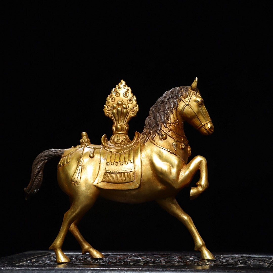 - 旧蔵 古銅彫 塗金 馬到成功 古擺件 古置物 中国古玩 骨董品 時代物 稀少唐物